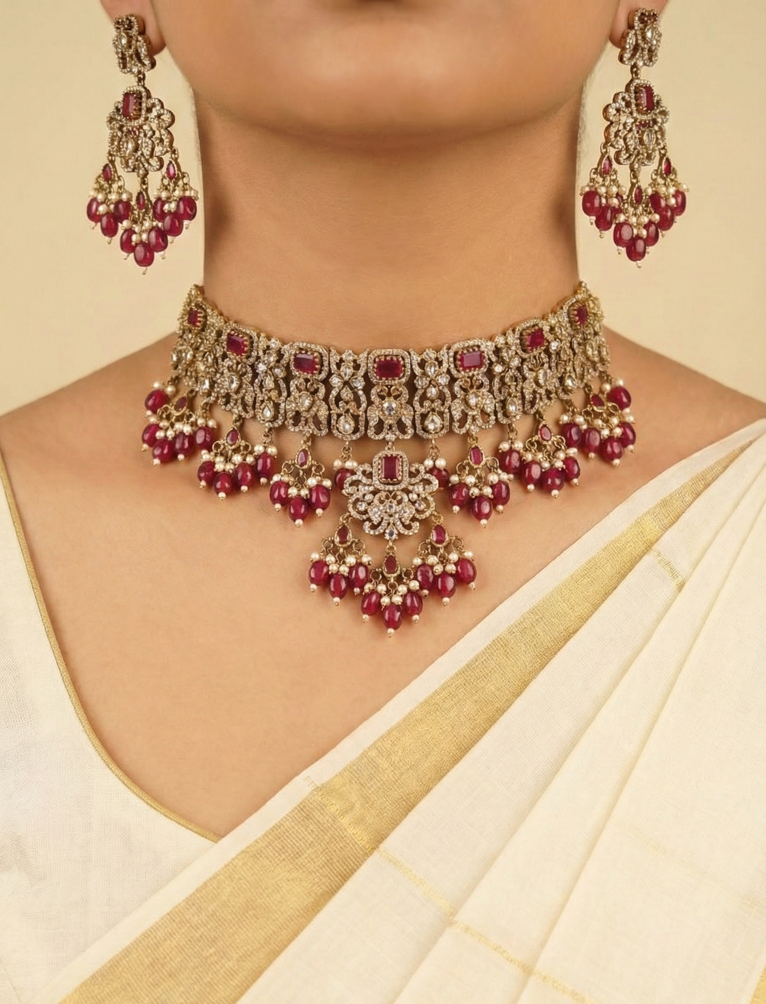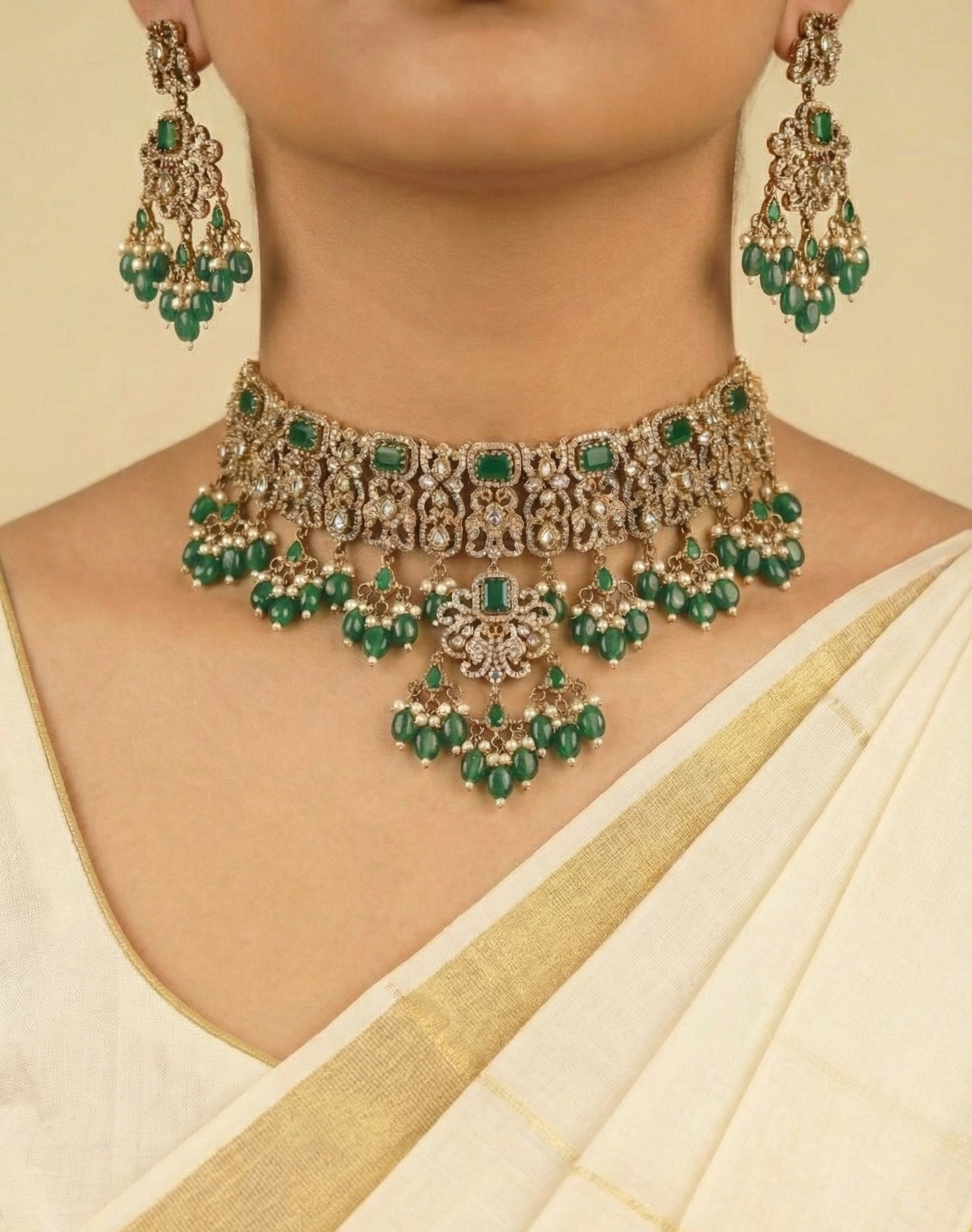 We select only the finest materials, including 24kt Gold Micron Plated Silver Alloy, adorned with imported Austrian cut Diamond look-alike stones, semi-precious colored stones, Kundan, and freshwater pearls. Each piece is carefully made to reflect our commitment to quality and style.