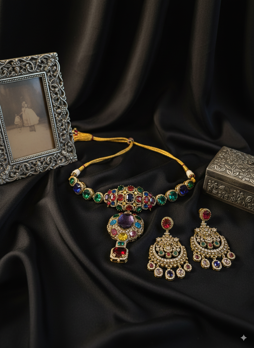 We select only the finest materials, including 24kt Gold Micron Plated Silver Alloy, adorned with imported Austrian cut Diamond look-alike stones, semi-precious colored stones, Kundan, and freshwater pearls. Each piece is carefully made to reflect our commitment to quality and style.