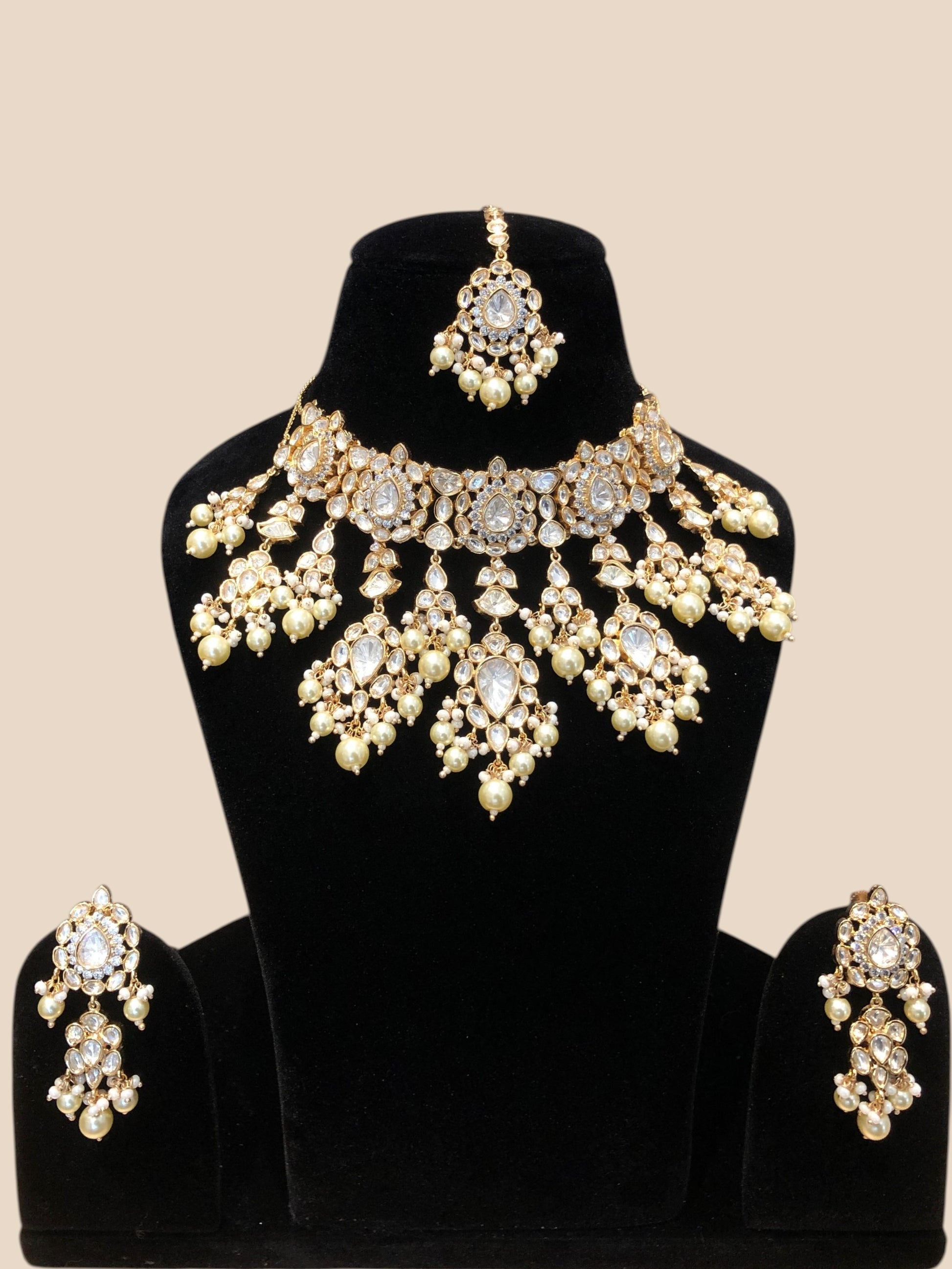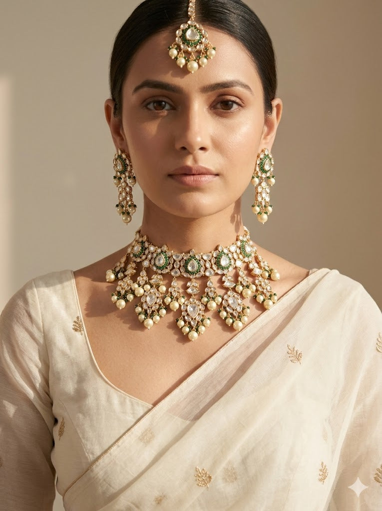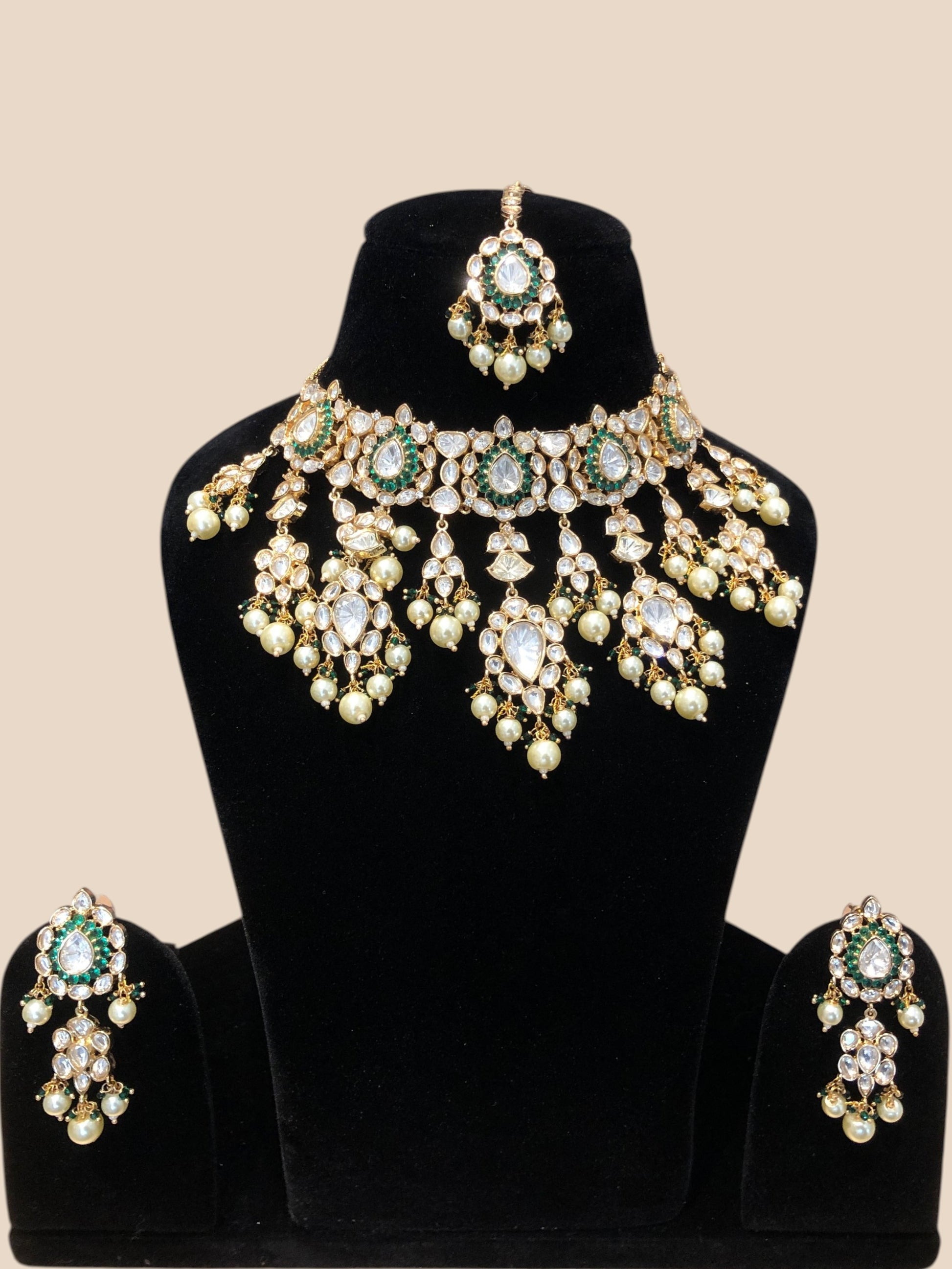 We select only the finest materials, including 24kt Gold Micron Plated Silver Alloy, adorned with imported Austrian cut Diamond look-alike stones, semi-precious colored stones, Kundan, and freshwater pearls. Each piece is carefully made to reflect our commitment to quality and style.