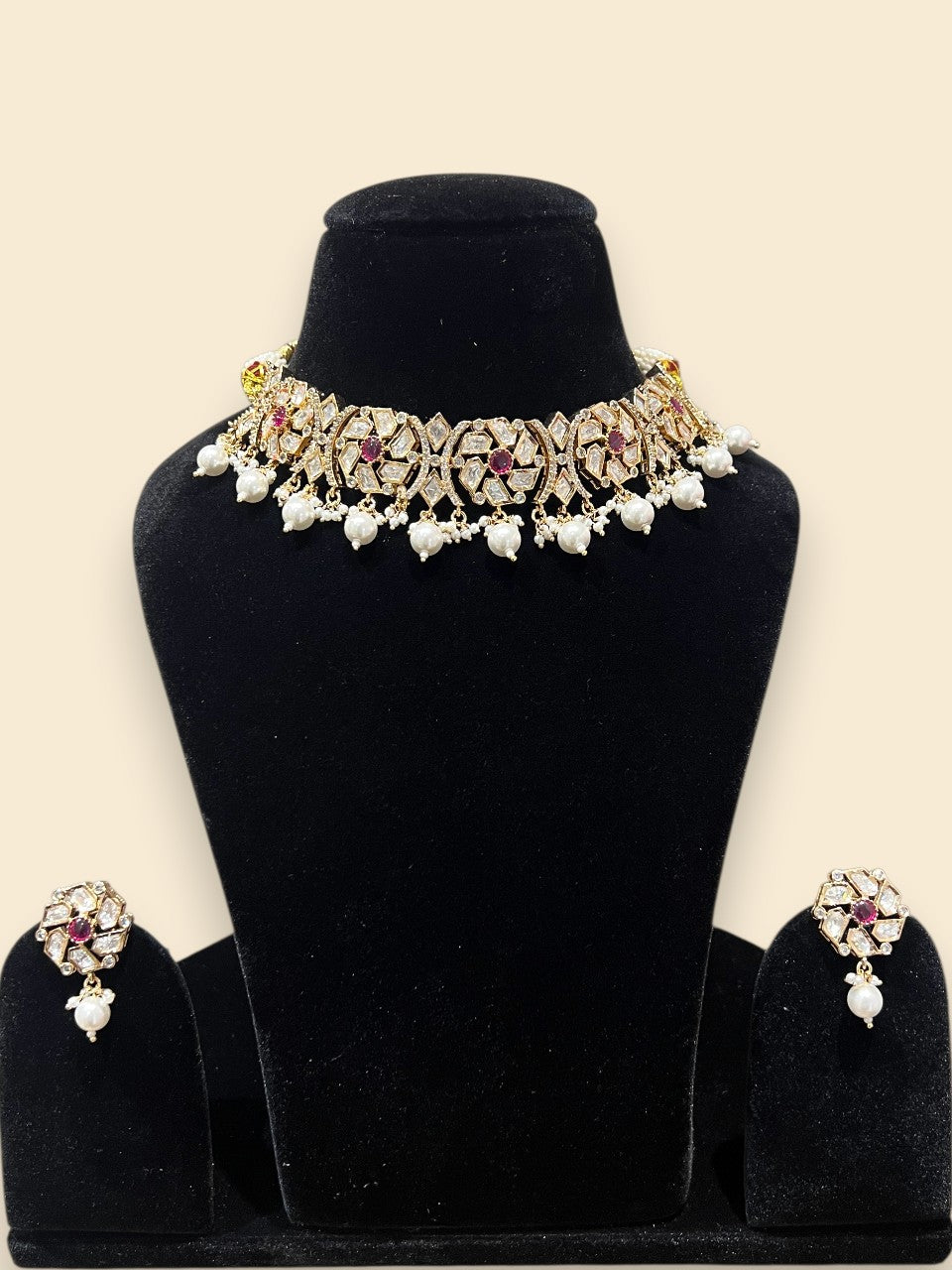 We select only the finest materials, including 24kt Gold Micron Plated Silver Alloy, adorned with imported Austrian cut Diamond look-alike stones, semi-precious colored stones, Kundan, and freshwater pearls. Each piece is carefully made to reflect our commitment to quality and style.