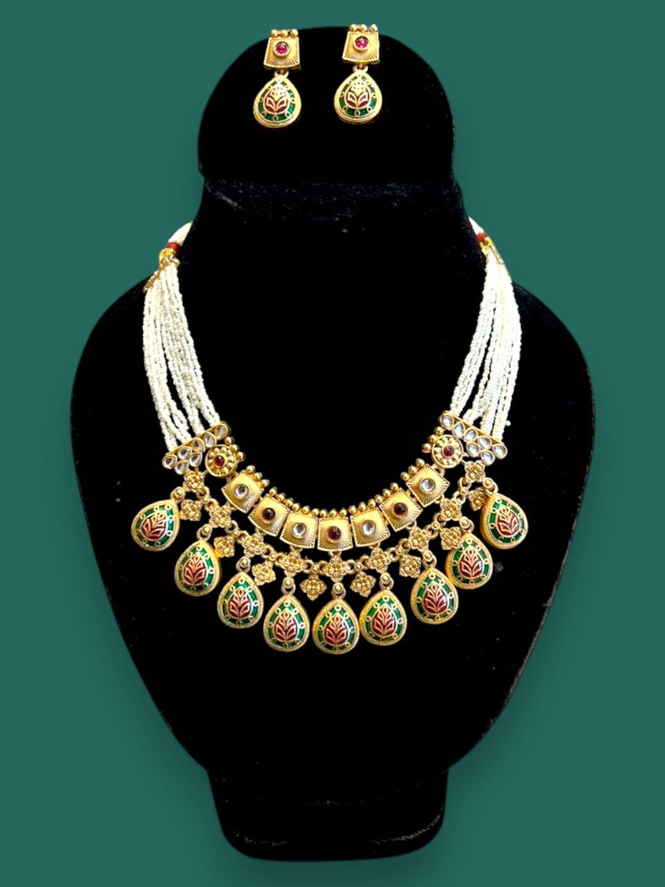 We select only the finest materials, including 24kt Gold Micron Plated Silver Alloy, adorned with imported Austrian cut Diamond look-alike stones, semi-precious colored stones, Kundan, and freshwater pearls. Each piece is carefully made to reflect our commitment to quality and style.