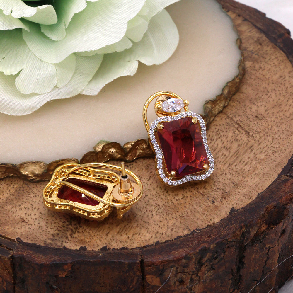 Add a touch of luxury to your outfit with these stunning 24kt. gold micron plated silver alloy earrings featuring diamond look alike stones and semi-precious stones, perfect for any special occasion.