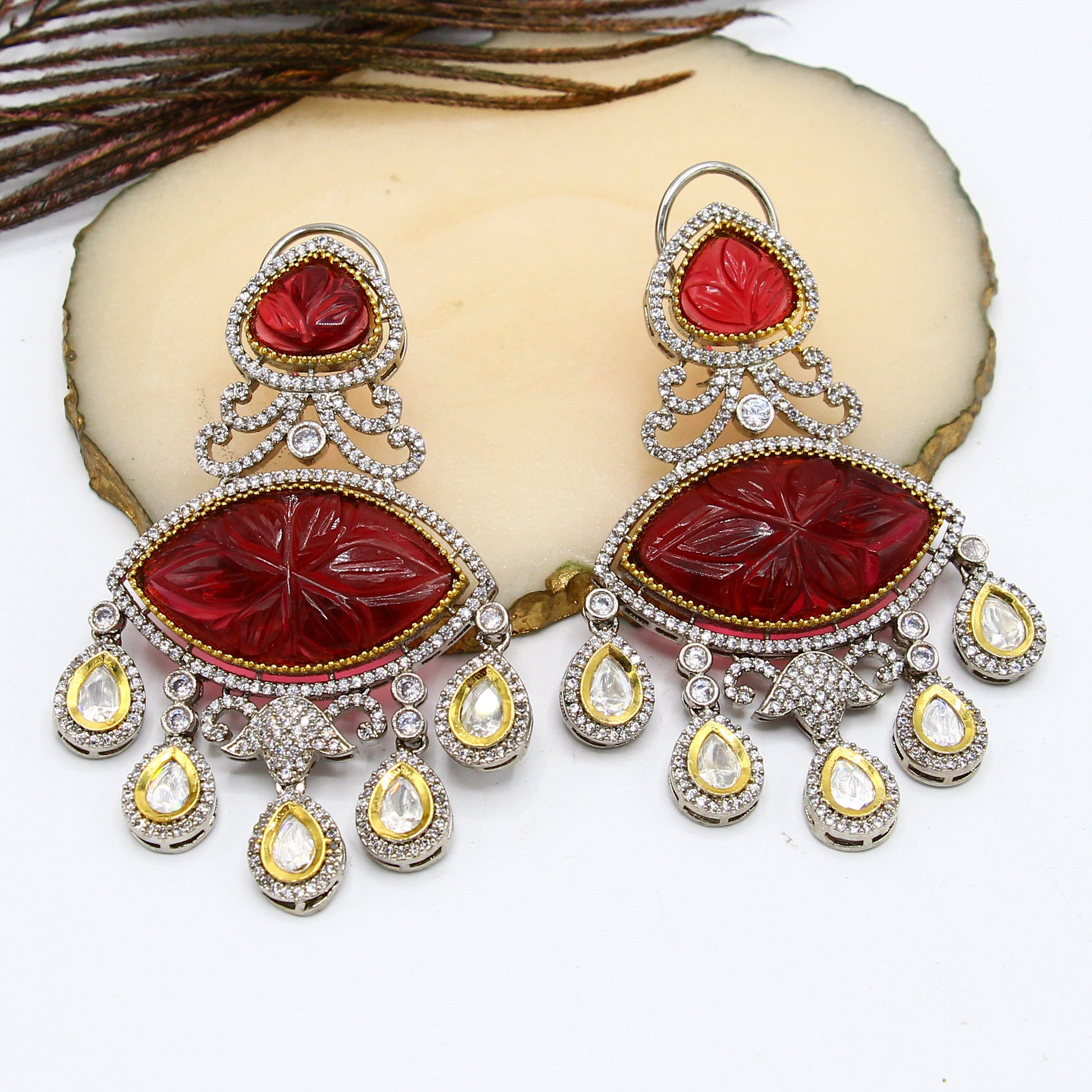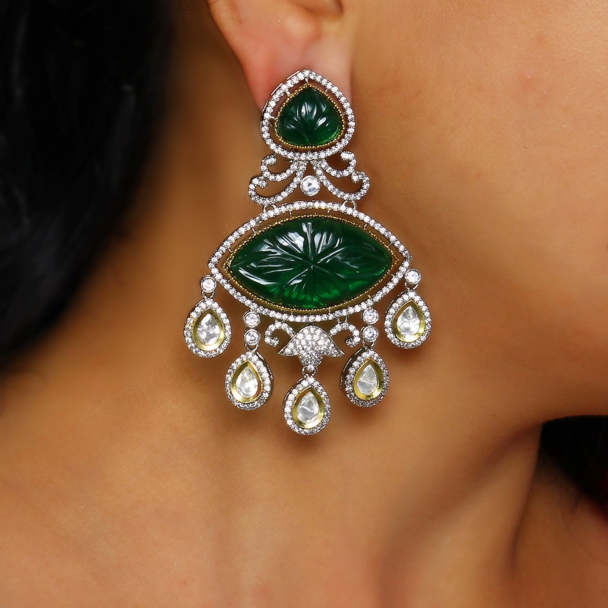 Ā We select only the finest materials, including 24kt Gold Micron Plated Silver Alloy, adorned with imported Austrian cut Diamond look-alike stones, semi-precious colored stones, Kundan, and freshwater pearls. Each piece is carefully made to reflect our commitment to quality and style.