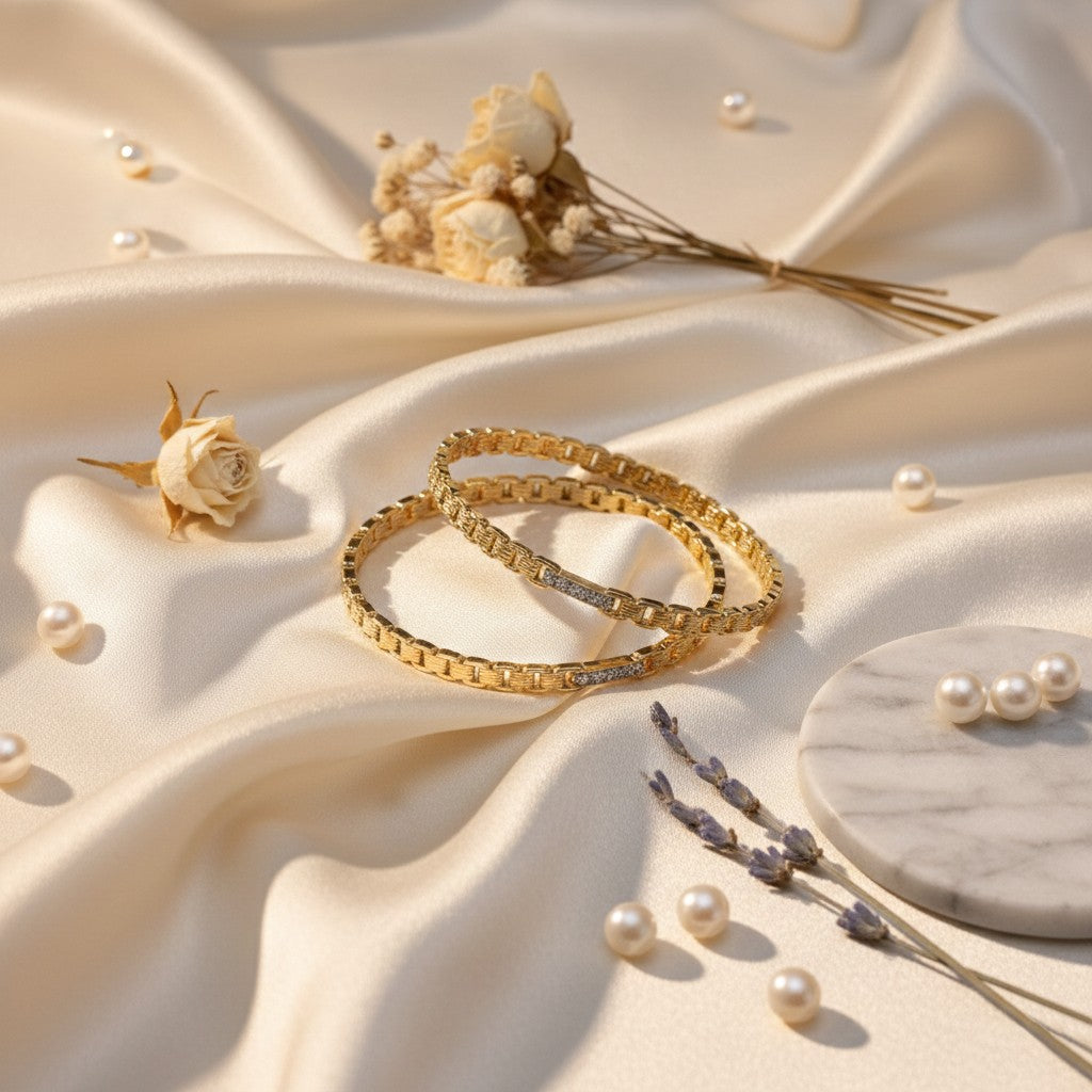 Slip into elegance with Eravika bangles where timeless charm meets modern flair. These beautifully crafted bangles add that perfect pop of personality to any outfit, whether you're dressing up for a special occasion or elevating your everyday look. Designed to catch the light and turn heads, Eravika bangles are your go-to accessory for making a statement without saying a word. Stack them, mix them, or wear them solo—the choice is yours!