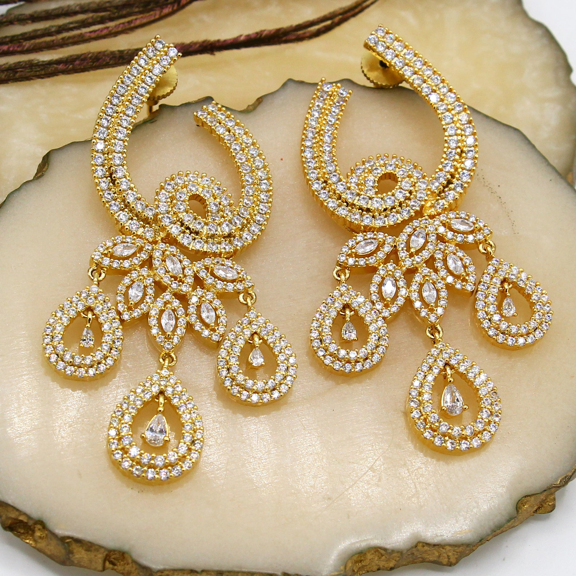 Elevate your look with these luxurious 24kt. Gold Micron Plated Silver Alloy earrings featuring brilliant Diamond Look Alike Stones and vibrant Semi-Precious Color Stones. Perfect for any occasion.